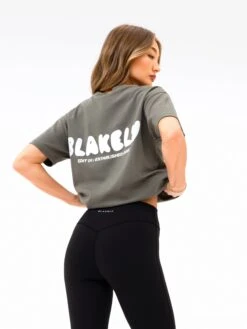 Our Cloud Print T-Shirt in Safari Green has been crafted with an oversized fit. It features short sleeves and a crew neck design. It showcases our new bubble style branding on the chest and back, which coordinates with the rest of the collection to create the perfect matching set.